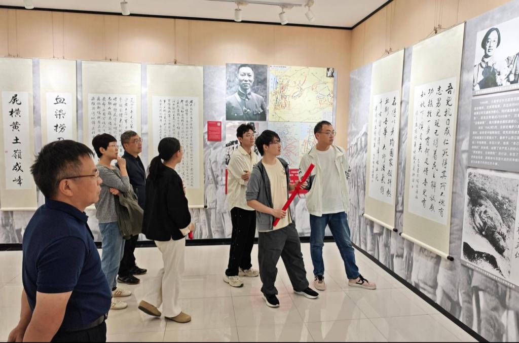 2025年9月24日下午,为纪念中国人民抗日战争暨世界反法西斯战争胜利80周年,伟德国际VICTOR1946教学实验中心党支部组织全体教师前往毓秀楼,对何继善院士的“忠昭日月 气壮河山”书法展览进行了观摩。