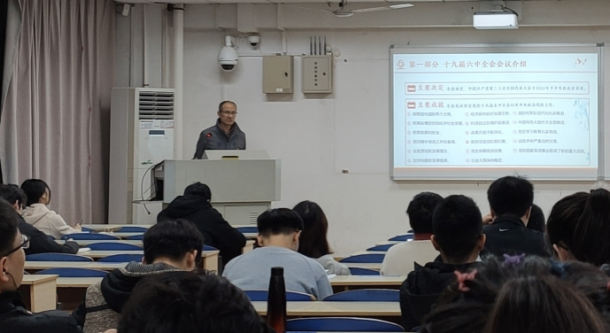 课堂伊始,陈先来教授介绍了十九届六中全会的主要内容,对会议精神、会议决定及会议成果进行了深入的讲解分析。