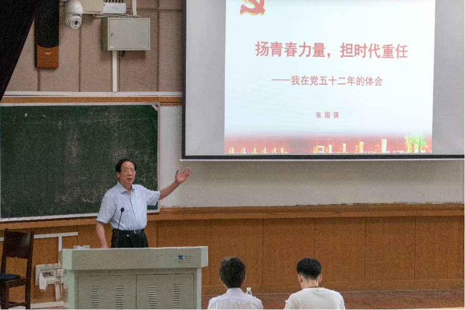 议程第五项,铁道校区关工委常务副主任张国强老师为全体毕业生党员授课。张老师从信党、为党、爱党三个方面讲述了自己52年以来的党员历程,并希望全体毕业生党员能够牢记百年历史,答好时代答卷;练就“三气”,专心接棒;把握“三向”;提高“三商”。