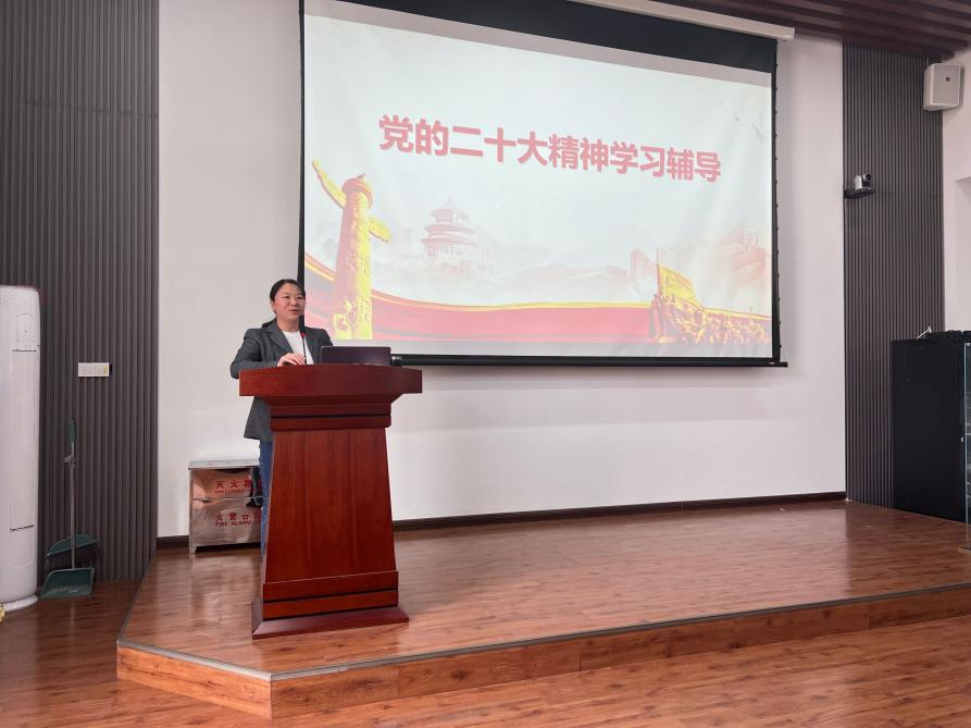 在本次党课学习中,李敏老师首先为现场的党员解读了党的二十大主题:高举中国特色社会主义伟大旗帜,全面贯彻新时代中国特色社会主义思想,弘扬伟大建党精神,自信自强、守正创新,踔厉奋发、勇毅前行,为全面建设社会主义现代化国家、全面推进中华民族伟大复兴而团结奋斗。接下来,李敏老师从“深刻把握十年来伟大成就的里程碑意义”、“深刻领会开辟马克思主义中国化时代化新境界”、“深刻领会以中国式现代化全面推进中华民族伟大复兴”、“深刻领会实施科教兴国战略与重大部署”、“深刻领会推进新时代党的建设新的伟大工程”等五个方面进一步阐述党的二十大精神。
