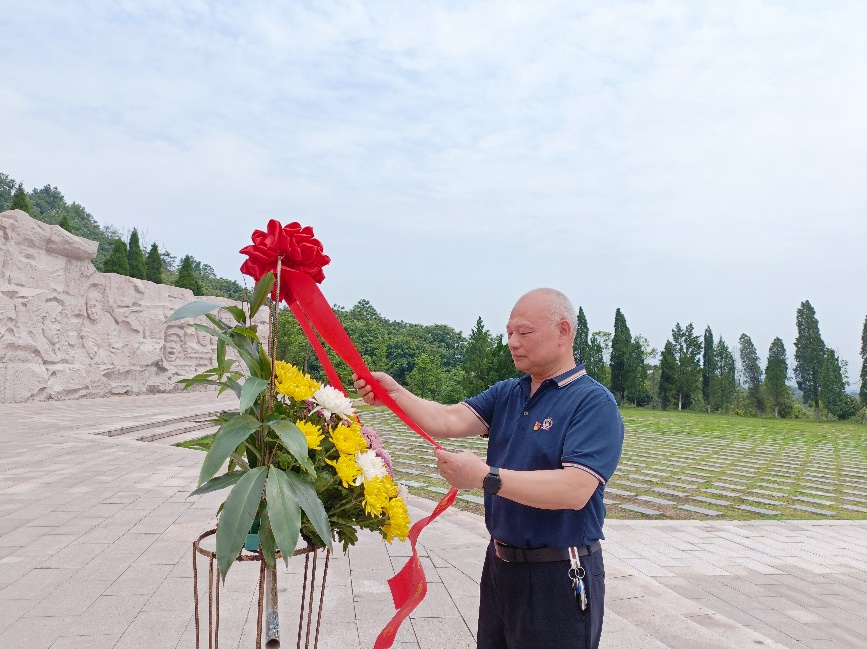 接着同志们前往凭吊广场为湘江战役牺牲的革命烈士们敬献花篮。在革命烈士的石雕前,党员们集体列队举行庄严的献花仪式,公司党委书记陈志刚教授上前整理了花篮上的红色缎带,全体在场人员向革命烈士石雕鞠躬默哀,表达深切的缅怀和敬仰之情。