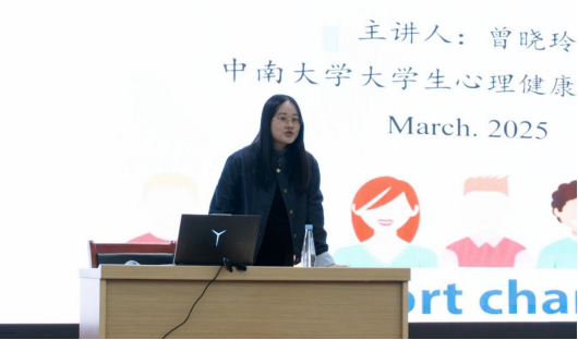 曾老师通过案例分析,详细阐释了抑郁症、精神分裂症等常见心理问题的识别方法与应对策略,并指出心理问题的早期发现与干预至关重要。我们还要留心关注身边可能出现心理问题的同学,勇于伸出援手,通过朋辈互助、心理咨询或专业医疗等途径及时纾解。曾老师最后说道:“关爱互助,心手相连,希望我们共同努力,营造出中南温度,让每个同学都能感受到心灵的温暖。”