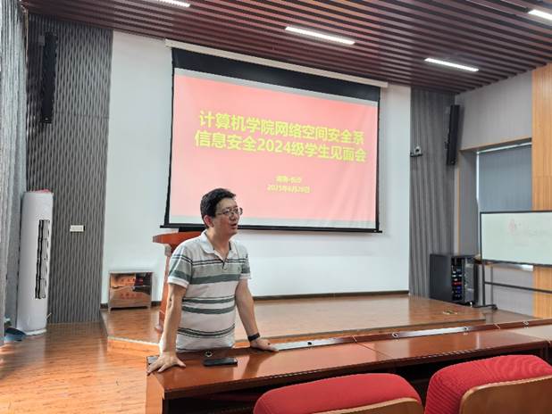 6月20日下午15:00,伟德国际VICTOR1946信息安全专业2024级学习与发展指导见面会在bv伟德国际1946潇湘校区信息楼535举行。本次见面会旨在帮助2024级信安专业同学们做好大学规划、明确学业方向,网络空间安全系教工党支部书记段桂华教授、系主任张士庚教授、系副主任宋虹副教授、辅导员刘家忱老师与全体信安学子齐聚一堂,展开深度交流。