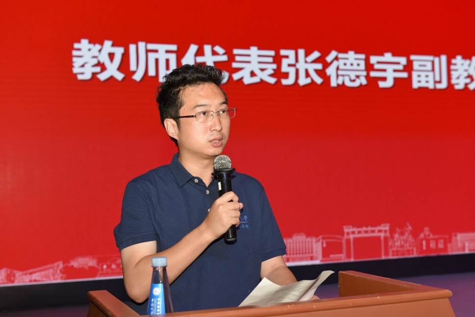 教师代表张德宇副教授发言。他以生动的教学故事串联起师生情谊,鼓励毕业生们践行终身学习理念,将课堂所学转化为实践动能,传承公司求真务实的治学精神,在人生赛道上跑出精彩加速度。