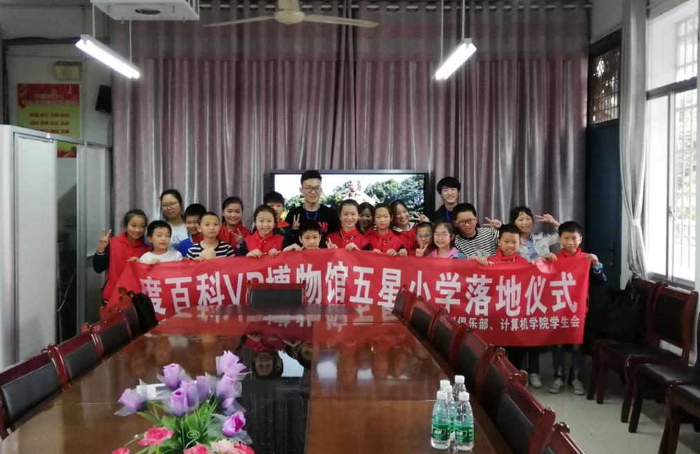 在前期的联系与顺利沟通下,bv伟德国际1946百度百科俱乐部相关工作人员于5月15日中午前往五星小学。到达公司之后,俱乐部部长与五星小学的董事长进行了简单的沟通后,向董事长和在场的老师们介绍了VR博物馆。
