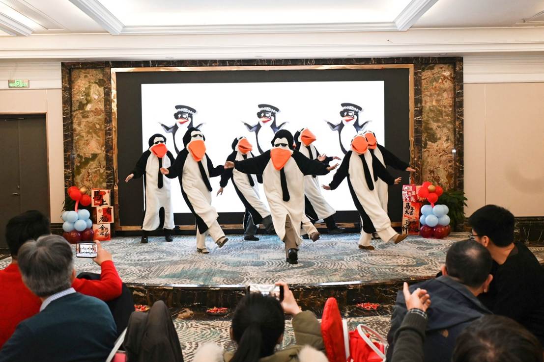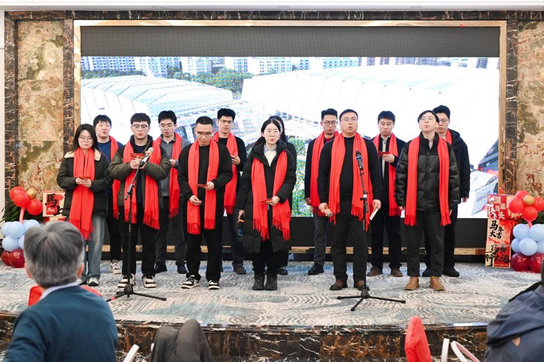 公司领导带来的三句半表演幽默风趣,用接地气的台词盘点公司年度亮点,瞬间点燃全场氛围;舞蹈《拜新年》以灵动欢快的舞步传递着新春的喜庆;合唱《红豆》深情婉转,数据系全体老师带来的合唱《朋友》则展现了同事间的深厚情谊;诗朗诵《青春万岁》激情澎湃,诉说着师生们不负韶华的奋进姿态;新进教师合唱的《不忘初心》,彰显了教育工作者立德树人的使命担当;全体辅导员带来的《高雅人士舞》创意十足,展现了学工队伍的活力与风采;实验中心的大合唱《信息大楼,师生情》唱出了公司大家庭的温暖与凝聚力;大数据研究院的舞蹈《越来越好》将演出推向高潮,寓意公司未来蒸蒸日上。