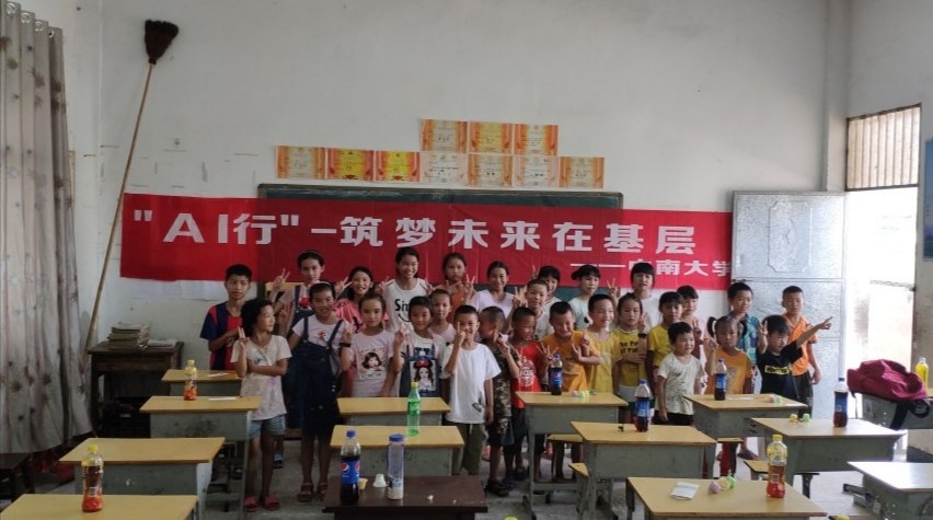 支教为期虽短,但内容丰富。团队的成员们设计了一系列教学环节让原本晦涩难懂的科技知识变得鲜活有趣。科普人工智能时,团队设计绕障碍小游戏形象讲解深度学习,组织辩论赛让孩子们探讨人工智能的利与弊;科学课上,团队利用气球、水瓶等简单道具带领孩子们做物理小实验,体味密度与浮力的联系;团队专门购买六套电子积木,让孩子们在自己动手拼装、搭建电路的过程中学习电路知识;用Python趣味编程带领孩子们玩手势识别、小猪佩奇绘画小游戏……这短短几天的授课内容仿佛一盏明灯,让花江的孩子们那一双双满怀憧憬又有些许迷茫的眼睛看清未来科技发展的方向,让孩子们触摸到科技之光。