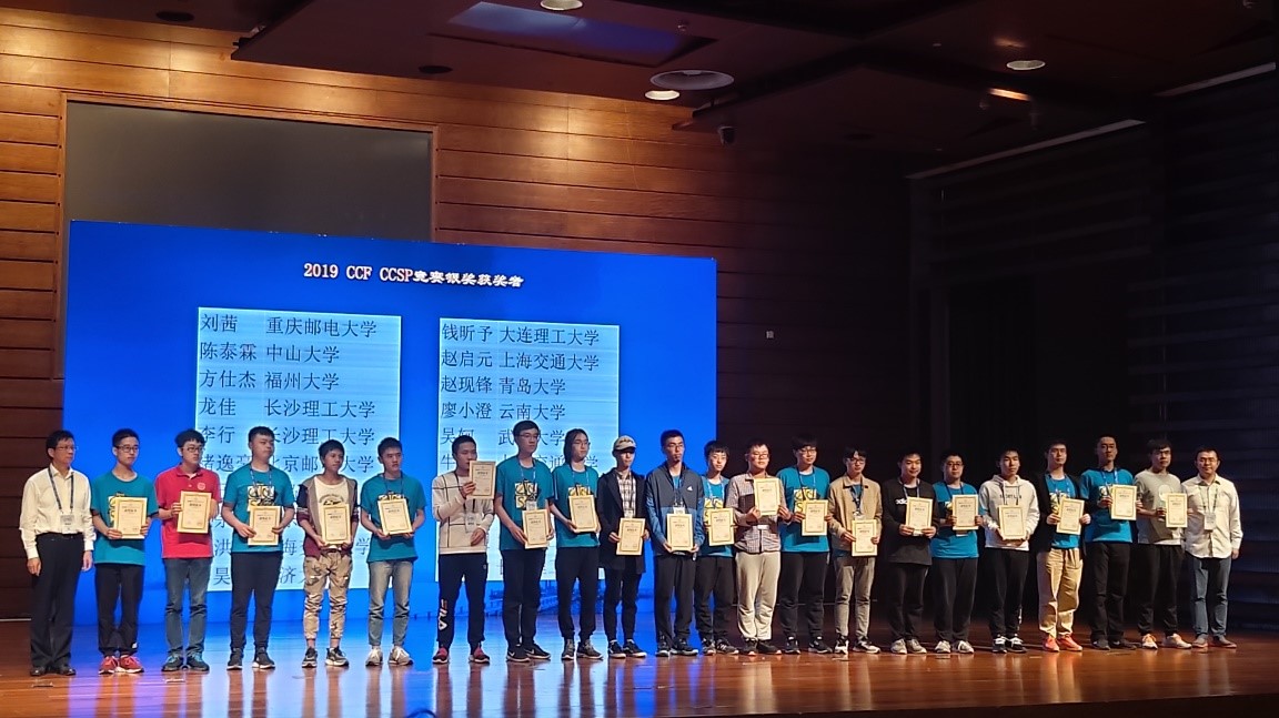 2019年10月16日,由中国计算机学会主办的CCF老员工计算机系统与程序设计竞赛(简称CCF CCSP竞赛)在苏州市职业大学举行,公司16级钱涛、苏志华、李宇轩、吴垠、张志宇、胡亚宸等六名同学代表bv伟德国际1946参赛,在刘逸峰老师的指导下,经过与来自清华大学、中国人民大学、上海交通大学等75所高校四百余名参赛人员的激烈角逐,最终荣获全国银奖、铜奖各1项,华中区金奖3项,银奖、铜奖各1项,创该赛事公司最好成绩。