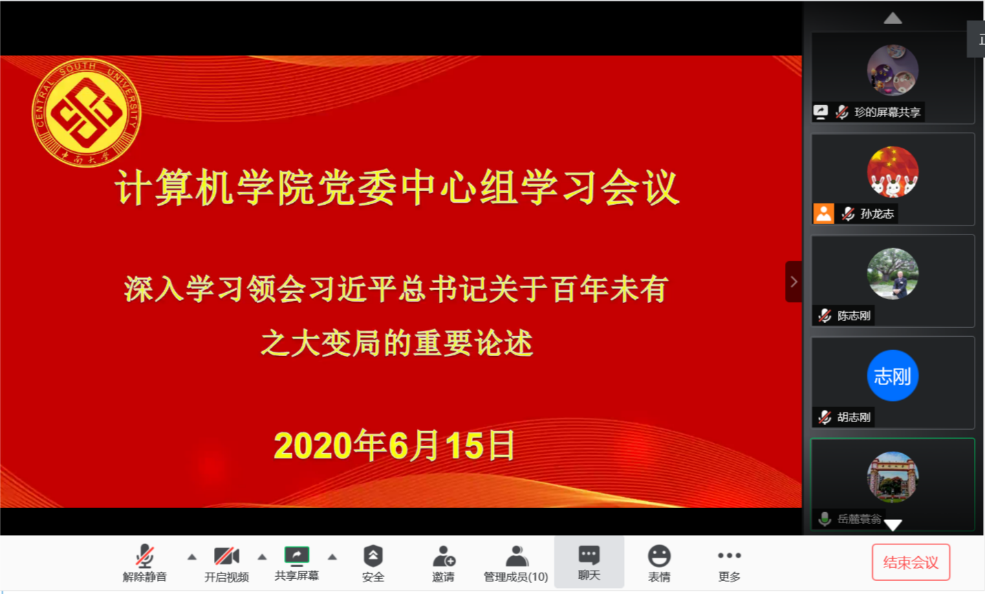 陈志刚书记做中心发言,他从三个方面做了解读。首先是如何理解和看待习总书记提出的“百年未有之大变局”。其次,面对百年未有之大变局,作为公司领导班子要敢作为,敢担当,主动谋划,要看到公司发展面临的风险和机遇,在未来技术公司、国家特色软件公司、华为计算能力公司三个方面积极主动作为,在大变局中把握发展先机。第三则是关于日常工作中如何在大变局中做好公司建设工作要将“破四唯”思想在公司各项工作中落地执行,要在中美IT领域的竞争中把握危机与机遇,要全力推进“课程思政”建设取得更显著成效。