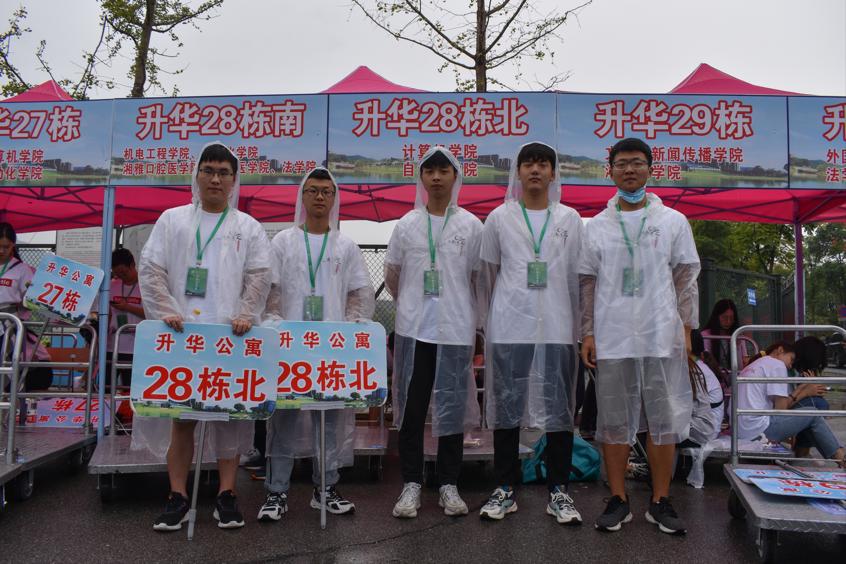 志愿者团队由团委、员工会、信宣、学服、科协与心助会等员工机构干部,各员工支部党员,以及自愿报名参加的17、18、19级同学组成。整个团队朝气蓬勃,将对公司的满腔热爱付诸于迎新工作中,将勤奋、踏实、敬业、奉献的精神薪火相传。不论阳光明媚与阴雨连绵,志愿者们坚持迎新工作,坚守在各自的岗位:他们或热情四溢帮助新生指路、取快递,或在新校区和南校区之间拖着满载行李的小推车来回奔波,或协助宿管老师完成新生报到流程。