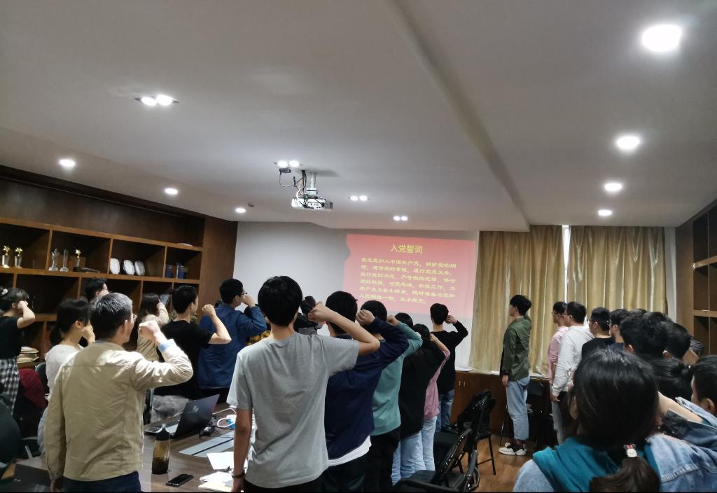 主要讨论了徐鑫等6名发展对象入党的问题。首先由发展对象宣读入党志愿书,接着入党介绍人和支部书记对发展对象进行点评,其后由各党员投票表决,最后由支部副书记宣布本支部决议:确定接收徐鑫、周泽敏、丁超、李伯鹏、廖勋5名同志为预备党员,全体党员进行入党宣誓。
