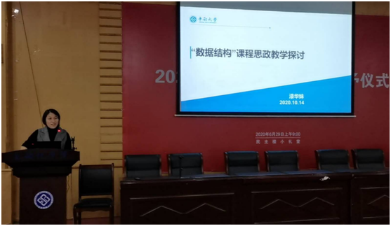 陈志刚教授以《编译原理》课程为例分析了如何将思政教育融入课程教学,切实提升立德树人成效。刘卫国教授以《立足课程,溶盐于汤》为题交流发言,他认为课程是思政的载体,思政是课程的灵魂。思政之于课程,就像盐之于汤。应充分挖掘课程思政元素,将课程知识与思政教育高度融合,使思政变得自然、合理、贴切。段桂华副教授以《密码学及应用》课程为教学案例,结合专业知识分析、创新创业思维、知识交叉融合和前沿知识拓展,在课程教学设计中巧妙融入思政元素,以实现专业课程与思政课程协同育人的“大思政”目标。漆华妹副教授以《“数据结构”课程思政教学探讨》为题,从课程定位、教学目标、教学设计、教学评价四方面生动地诠释了如何挖掘课程教学内容中蕴含的思政元素。她认为,课程思政应坚持目标导向,强化创新能力培养,浸润式培养员工的社会主义核心价值观,最终达到思政元素与专业课的有机融合。
