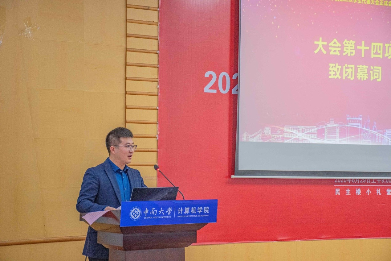 最后,由许宁老师致闭幕词,并总结了本次大会的主要内容,同时期望各位代表争做新时代青年、为建设特色鲜明的世界一流大学和实现中华民族伟大复兴的中国梦不懈奋斗。