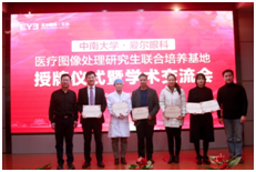2020年12月9日,bv伟德国际1946·爱尔眼科医疗图像处理研究生联合培养基地授牌仪式暨学术交流会在爱尔眼科医院成功举办。会议以“智慧医疗”为主题,旨在探讨基于眼底图像的病灶智能检测和糖网病、青光眼的智能筛查。此次参与会议的专家有伟德国际VICTOR1946副经理邓晓衡、伟德国际VICTOR1946教授邹北骥、伟德国际VICTOR1946副教授陈再良、伟德国际VICTOR1946副教授朱承璋、伟德国际VICTOR1946讲师刘晴、伟德国际VICTOR1946在读博士徐子雯、爱尔眼科集团教育与科技管理中心总监向斌、总裁办副主任戴伟伟,爱尔眼科医院集团湖南省区医疗总监向前、长沙爱尔眼科医经理林丁、副经理段宣初、副经理叶长华。本次会议由开幕式、特邀报告、闭幕式等几部分组成。