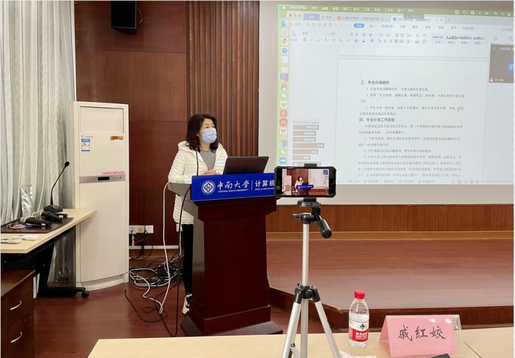 随后,公司教务办戚红姣主任对计算机大类专业分流政策进行了详细的解读,并向同学们详细地介绍了相关实施细则。