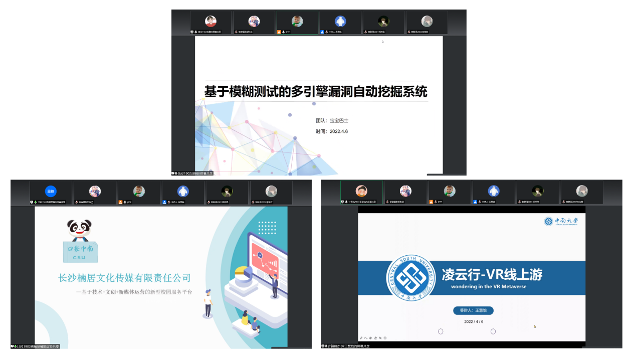 休息十分钟后,老师同学们再次进入评优答辩大会状态。青年之志,不浮于形,不流于势。十佳老员工答辩中,各个同学依次进行个人展示并回答提问,其中,更有21级的员工勇敢报名参加评选。学业、科研、志愿活动、集体建设全面开花,展现当代老员工的风采与担当,展现中南学子的志气与能力。创新创业优秀团队答辩中,各团队进行创新创业成果与思想展示。在创新的路上,他们积跬步以至千里;在追梦的路上,他们积点滴汇聚未来。团队各成员之间分工清晰,思想碰撞,终汇聚为集体智慧结晶,闪烁着梦想和付出的光芒。