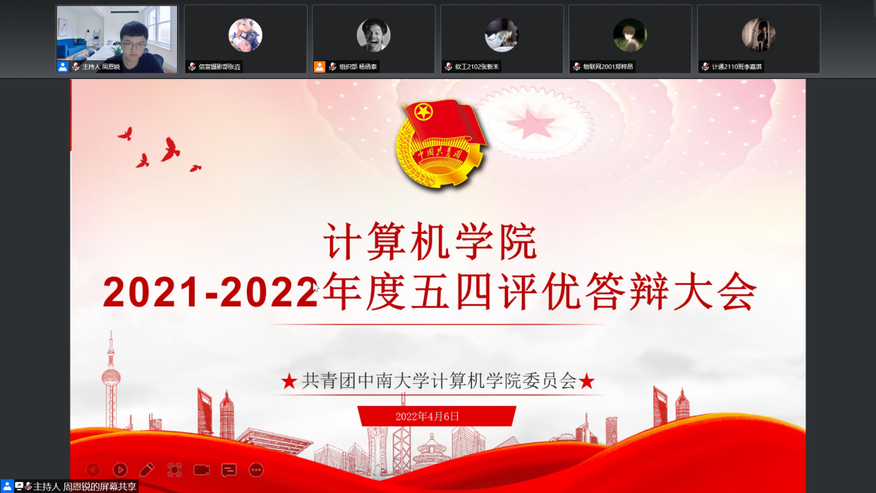 2022年4月6日下午两点三十分,伟德国际VICTOR19462021-2022年度五四评优答辩大会以线上会议的形式准时召开。出席此次大会的有公司党委副书记史建权、员工办公室主任师雷宏、分团委书记许宁以及全体辅导员老师。本次会议由周思锐主持。