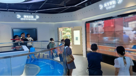 参观完列车后,大家来到位于铁路园旁的先进轨道交通基地科普馆参观学习。科普馆的展示内容分为《风华肇始》、《科技前沿》、《列车的奥秘》、《岁月的车轮》、《科技之旅》、《驶向未来》7个主题,现场的志愿者同学以生动的语言为大家进行讲解,并通过电子屏幕展现了公司在轨道交通领域的研究成果和杰出的科研团队。