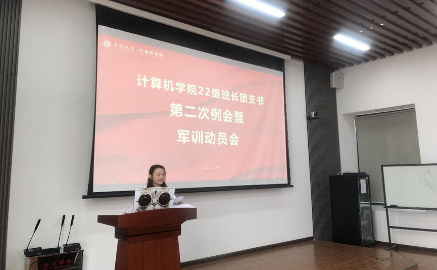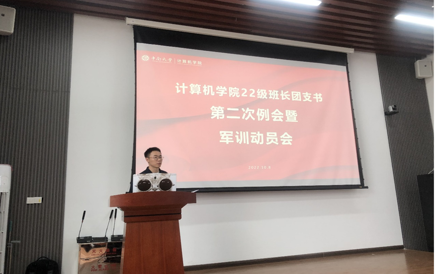 接着,军训指导员刘烁烁老师对军训的事务进行了总括性的介绍,并向参会的班长团支书明确了军训的要求。刘烁烁老师指出,在军训过程中,我们将进行思想上的升华、军事技能的学习,开展新生第一堂思政课,举办“喜迎二十大,奋进新征程“的主题系列活动,并进行军训文化氛围的营造。他提到,同学们应政治思想到位、严抓安全防线,注重疫情安全、训练安全、舆情安全,以及食品安全,公司也将科学按纲施训,严抓疫情防控。对于具体的要求,刘老师向同学们传达了有关个人健康防护的重要性、宿舍建设的内容、封闭管理的规范,以及考勤制度的安排。此外,刘老师还细心地提点各位班长团支书,应注意与其他班委的分工合作,在个人意志体魄得到锻炼的同时增进班级同学感情、提升班级凝聚力,带领班级更好地发展。