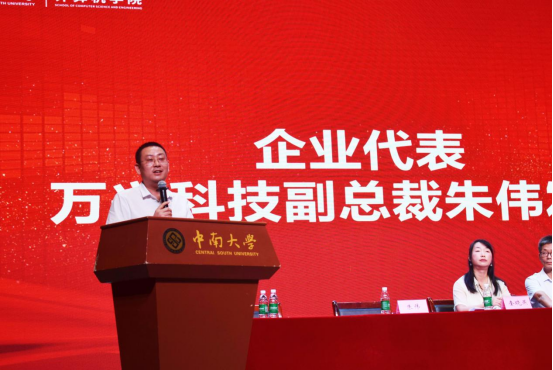 接下来,企业代表万兴科技副总裁朱伟发言。他简单介绍了万兴科技的企业概况,分享了互联网行业的现况以及未来的发展,希望中南学子能够不断提高综合素质,增强学习和自我驱动能力,培养创新思维,提高团队合作沟通能力,以适应企业和社会的发展需要。