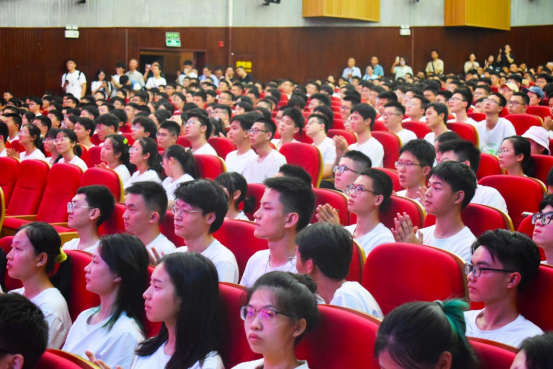 紧接着是老生代表唐健恒和新生代表延沫涵的发言。唐健恒向新生们表示了热烈的欢迎和由衷的祝贺,希望学弟学妹们能够充分利用大学的资源和机遇,在丰富多彩的老员工活中全面提升自我,积极拥抱大学的无限可能,创造一段充实而难忘的大学时光。延沫涵则表达了对未来四年大学的生活的无限憧憬与遐想,希望能够与同学们一同拥抱新环境,走出舒适圈,突破自我,不畏挫折,学以致用,在探索科学世界的旅途中为母校书写新华章,为党和国家做出自己的贡献。