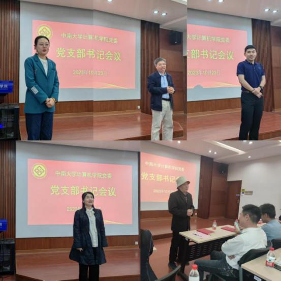 随后,离退休党支部书记谭汉松、计算机科学系教工党支部书记张祖平、研究生第九党支部书记戚红姣、研究生第十四党支部书记张韵仙、本科生第六党支部书记宋晓萌分别做支部工作经验交流。