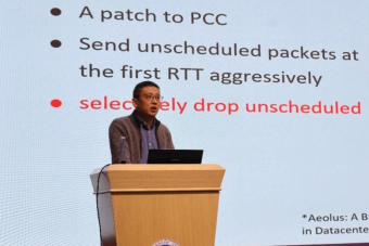 特邀专家南京大学田臣教授以《Congestion Management in/beyond Datacenter Networks: Status Quo and Opportunities》为题作学术报告。他介绍了数据中心管理中拥塞控制和流控的基本概念和最新研究成果,重点从流控的角度分享了他们团队在这一领域的多项创新工作。