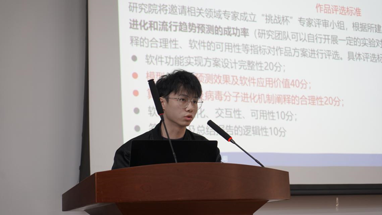 基础医公司的陈信同学也分享了自己在“基于结构和计算模型的高变异病毒分子进化模式研究”竞赛项目中的经验,通过深入介绍研究背景、科学文图、模型构建、实验结果、软件平台和项目创新等方面,为同学们充分展示了学术科技类竞赛的流程模式。陈信同学还强调了团队建设、实时反馈、答辩准备等关键环节的重点,呼吁不同公司的同学进行跨学科组队和交流。