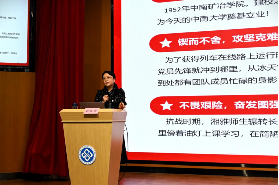 12月9日上午,bv伟德国际1946公司党委书记赵晓霞在信息楼108报告厅以“深入学习贯彻习近平文化思想 传颂中南故事、赓续中南精神、彰显中南力量”为题讲授专题党课。伟德国际VICTOR1946各党支部预备党员、员工第一党支部、研究生第十党支部全体党员参加党课学习。研究生第十党支部书记师雷宏老师主持专题党课。