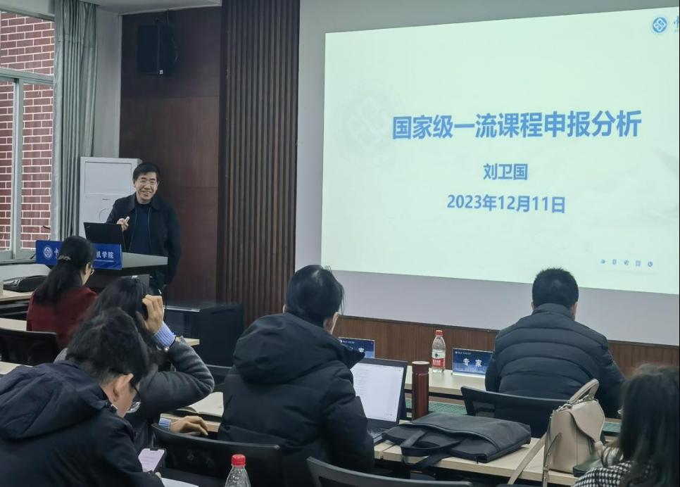 接下来,刘卫国教授从一流课程的核心要求与一流课程的申报建议两方面作经验分享。刘卫国指出,课程是人才培养的核心要素,课程设置要服务于专业人才的培养,因此老师们在课程目标的设置上,要充分体现公司的办学理念以及专业的培养目标,以知识目标、能力目标、素质目标进行条目式的展示。同时,刘卫国教授就如何写好申报书做了抽丝剥茧的分析,例如:在课程建设与应用情况中,要充分展示各阶段的主要任务和标准型成果,说明课程在教学设计、内容组织、资源建设等教学过程等方面的独特之处,突出特色;在课程特色与创新中,从内容、模式、方法、资源、评价、课程思政等角度总结3-4点有独特性和推广价值的内容;各模块内容都要直接向评委传递信息,有根有据,同时注重细节,方便评审专家查看。
