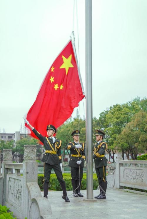 春风和煦,晨光熹微。6时40分,升旗仪式正式开始,国旗护卫队身着戎装,昂首挺胸,迈着整齐而坚定的步伐,护送鲜艳的五星红旗至升旗台。宏伟的国歌奏响,五星红旗冉冉升起,全体师生庄严肃立,行注目礼,高声共唱国歌,歌声整齐嘹亮,心中激情澎湃。