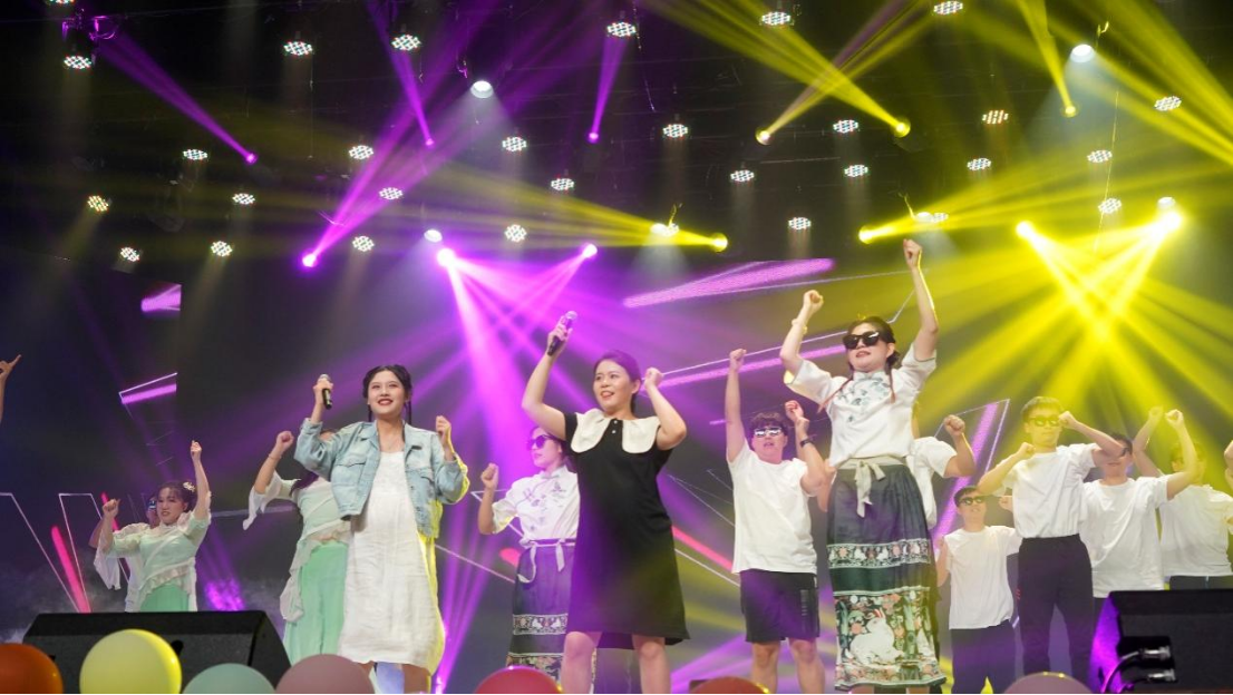 “合成甜虾”乐队演绎的《唱支摇滚给你听》,表达了对独立自由的追求,唱响生活的热爱。舞月草locking队的舞蹈《Let‘s lol》节奏明快、轻松,让台下的老师和同学都忍不住跟着节拍摇摆。紧随其后的音乐剧《We don’t talk about Bruno》则由城南舅事团队表演,他们将歌曲与舞蹈交织,寄语毕业生勇敢面对未来的未知,在新的旅程中勇往直前。