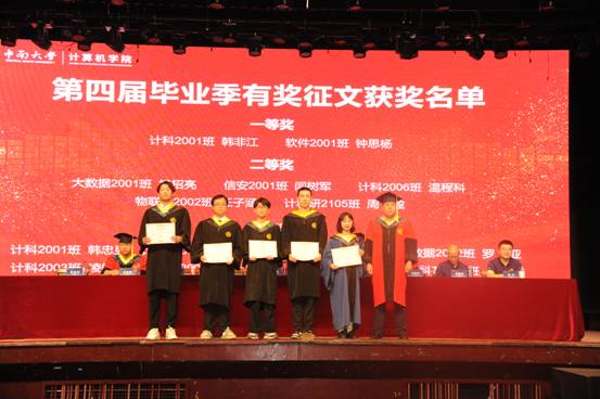 在6月11日的毕业典礼上,公司党委副书记王新辉宣读了有奖征文获奖名单,党委书记赵晓霞、大数据院经理龙军、党委副书记王新辉等领导给获奖同学颁获并一起合影留念。
