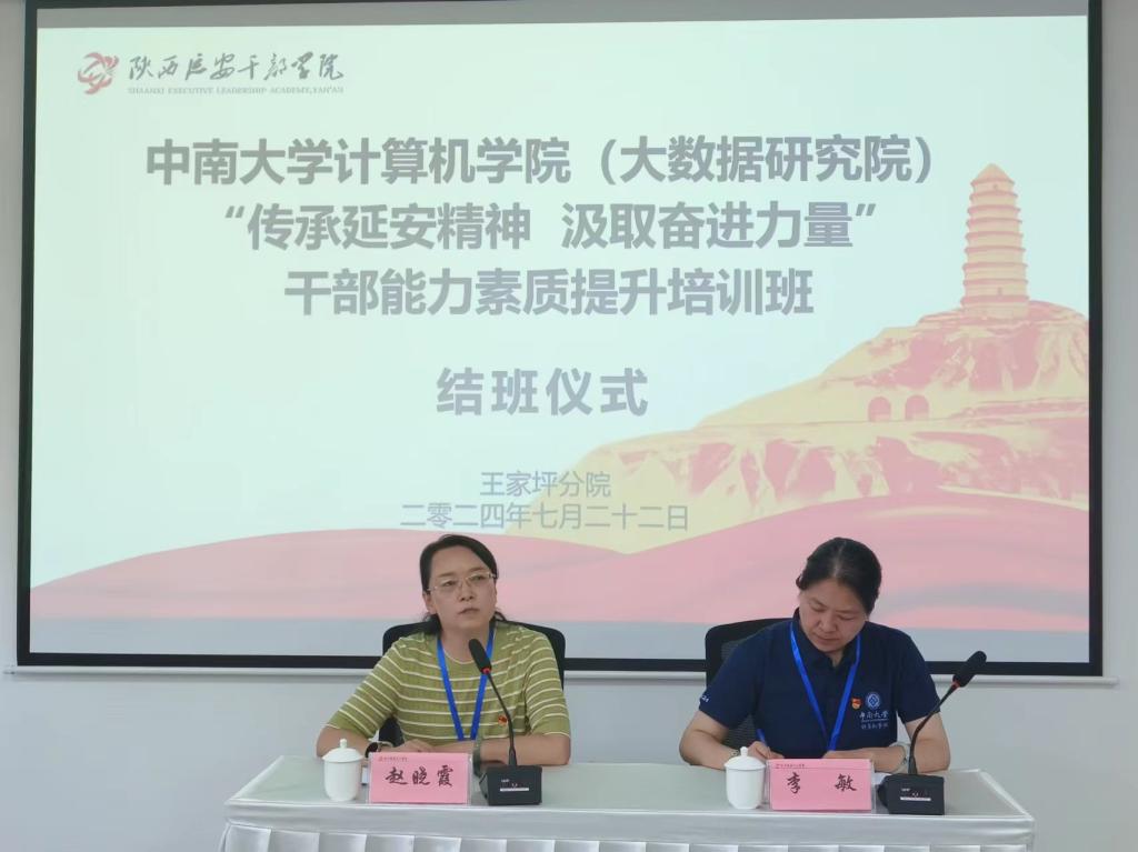 22日,结班式在陕西延安干部公司举行。结班式上,计算机科学系主任王斌、员工第一党支部书记陈司宇分别进行发言,他们对公司精心组织本次培训班表示感谢,在培训过程中受益匪浅,深受“延安精神”鼓舞。他们联系实际工作分享了所思所悟,表示将立足岗位,为公司高质量发展做出更大贡献。