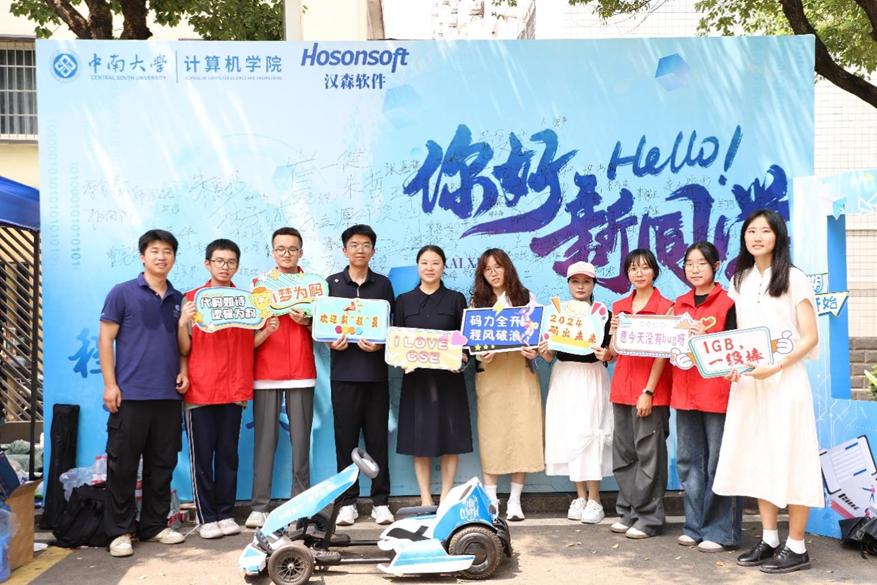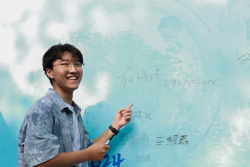 眼前满是朝气蓬勃的面孔与自信活泼的笑容。新同学们青春靓丽,意气风发,为公司注入生气与活力。他们尝试驾驶蓝色迎新卡丁车,在“‘程’前启后,‘计’往开来”展板上留下自己的独属签名,在各个公司组织招新海报前驻足,充满对未来的希冀……公司的万事万物颇具新鲜感。签字、合影、采访,陪同的家长们笑意盈盈,霎时阳光灿烂,暖意融融。