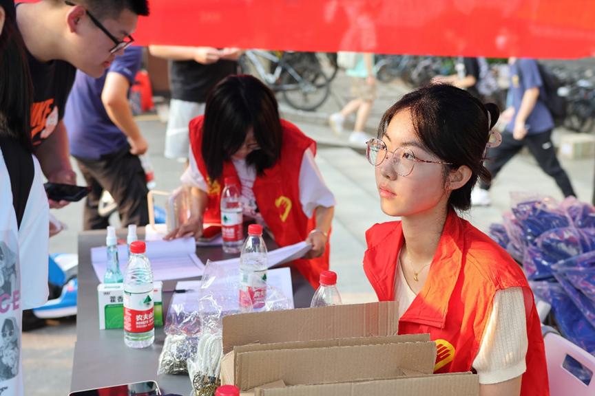 从清晨到黑夜,从新校区至南校区,志愿者们忙碌的身影穿梭在迎新点和宿舍楼间。他们搬运行李、登记注册、分发纪念品、耐心介绍公司公司情况,真挚热情地为往来的新生及家长提供帮助。烈日炎炎,骄阳似火,热浪没有阻拦他们的脚步,汗水映衬下,红色的志愿者服显得更加亮眼。