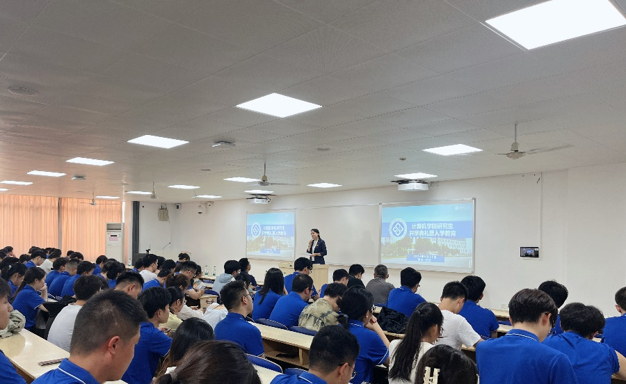 业务办公室主任雷皓老师详细介绍了公司产品管理工作流程和资助政策,并为新生们的教务问题解疑答惑。业务办唐珊老师介绍了公司产品环节和学位工作,详细讲解了博士研究生和硕士研究生的不同培养过程,以及培养环节中的关键时间节点、流程及注意事项。