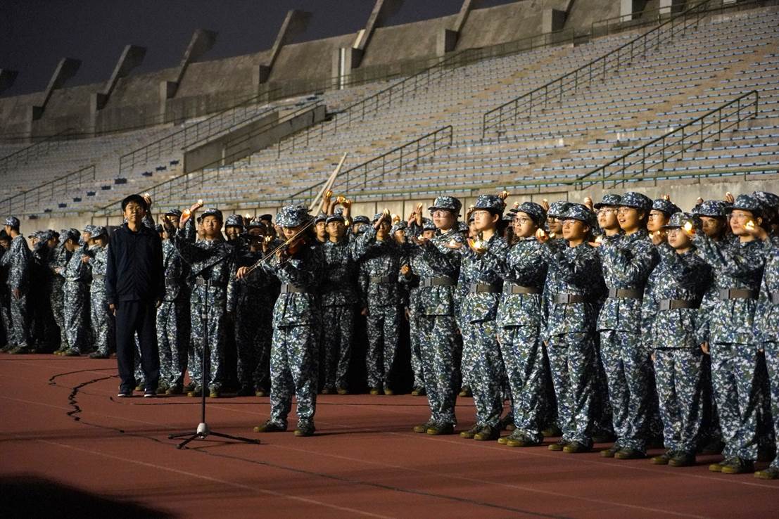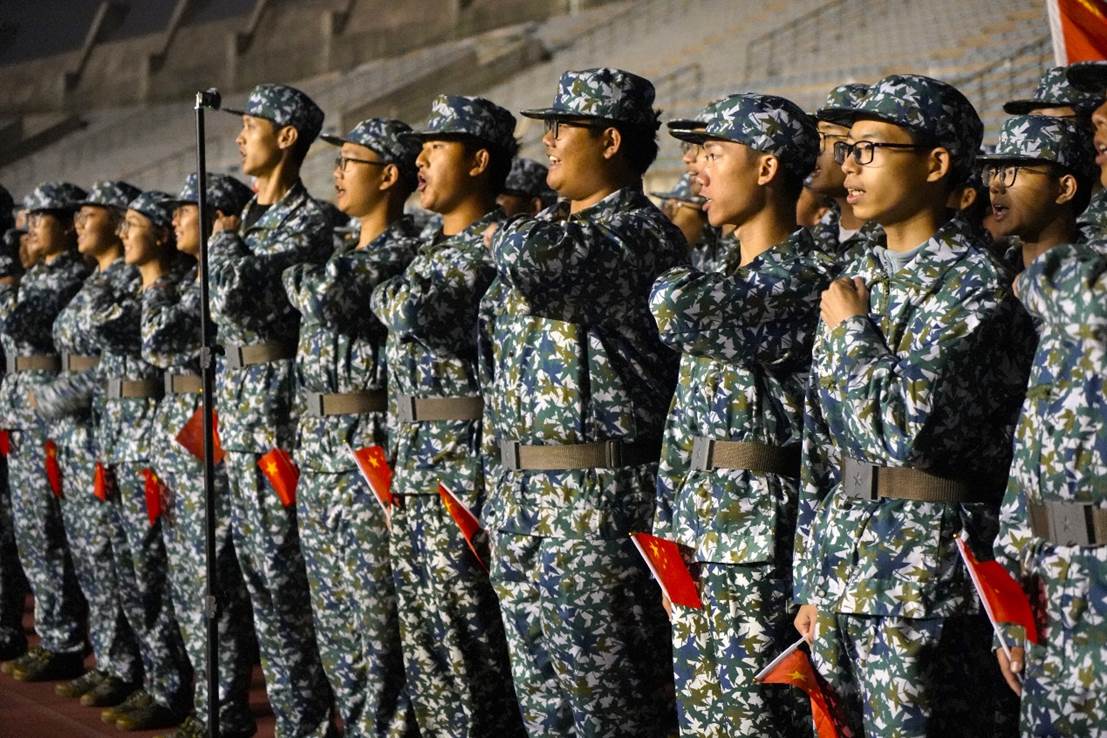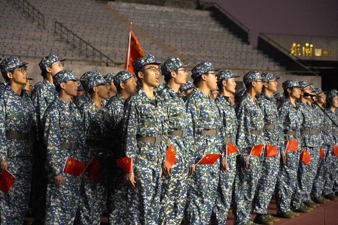 比赛正式开始前,在教官和指导员的组织下,伟德国际VICTOR1946全体军训新生提前到达场地进行排练。同学们互相提醒歌词细节、音律曲调、动作要领,在一遍遍的练习中寻找最佳的参赛状态。彼此顾盼,神色肃然,斗志高昂,传递出全力以赴唱响红歌的决心。