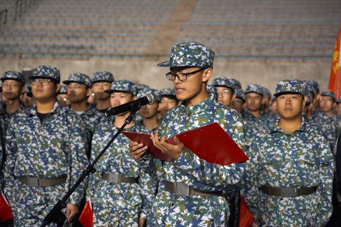 豪迈的歌声落下,公司党委副书记王新辉组织新生诵读诗歌。声起之处如洪钟震耳,气势磅礴。诗歌忆往昔英烈之举,感今日和平不易,锵锵然若金戈铁马,激昂慷慨。诗中亦有王新辉书记对全体军训新生的寄许,希望我们感先辈之志,承先辈之怀,继先辈之业,以红歌唱响时代之音。