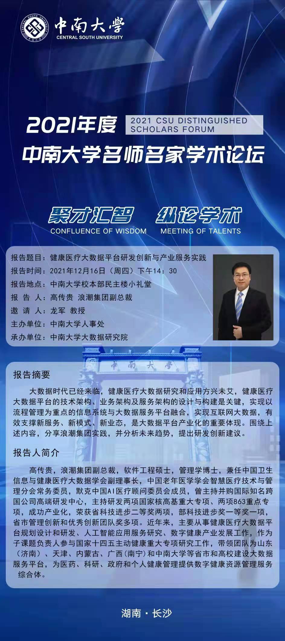 bv伟德国际1946名师名家学术论坛-健康医疗大数据平台研发创新与产业服务实践