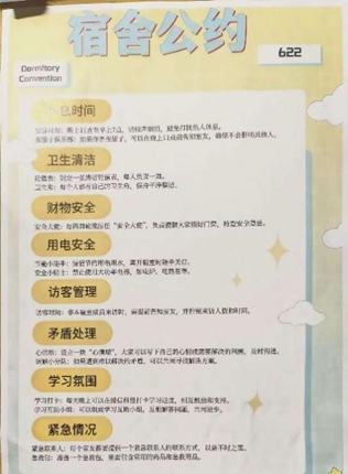 自此次活动开展后,共有51个寝室积极响应,制定了51份寝室公约。同学们深知寝室公约是营造良好寝室氛围的重要保障,承载着大家对和谐寝室的共同期许。