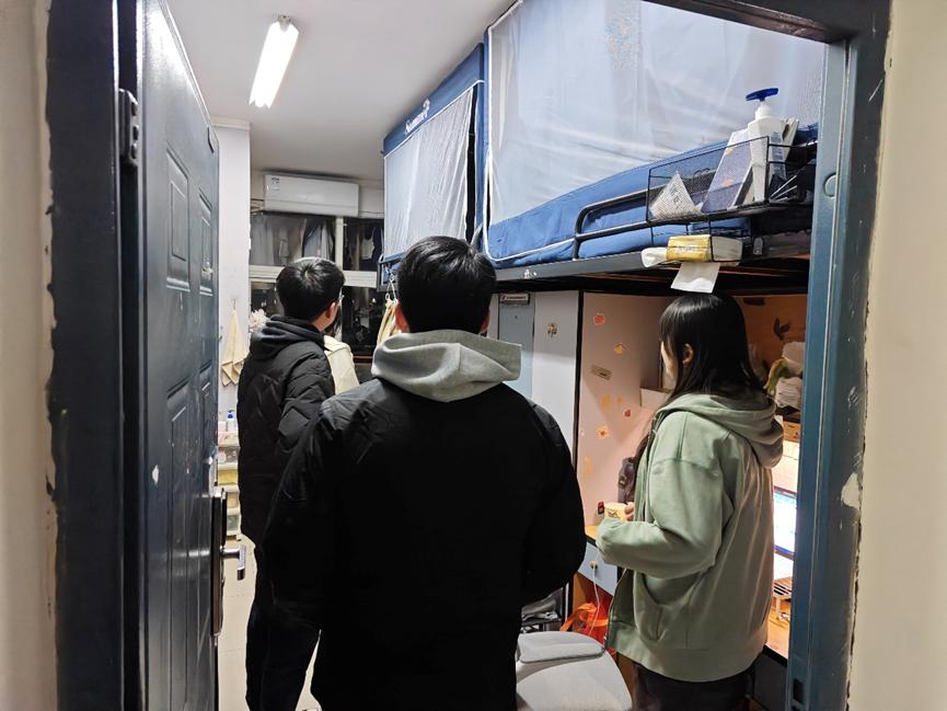 2024级本科生辅导员刘家忱、达泽文、赵赫严格践行“一线规则”,深入员工宿舍,对宿舍内是否存放或使用大功率违章电器和易燃易爆物品,是否存在私拉电线、给电动车电池充电、有离开房间时不关闭电源、长明灯等不安全用电现象,是否有占用、堵塞消防通道现象等进行细致检查,督促引导员工及时整改安全问题,切实纵深推进安全教育工作。
