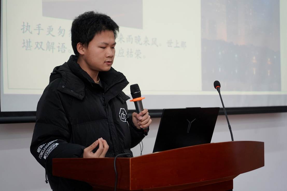 院团委宣传部(信息宣传中心)副部长庞臣志进行了文学创作经验分享。他从流年体诗歌、伤感体、一般古体、近体、古风等多个方面进行了经验分享和技巧讲解。