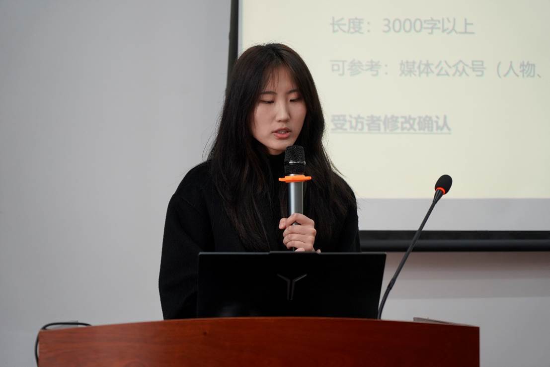院团委宣传部(信息宣传中心)副部长何亚芮进行了新闻稿写作经验分享。她细致讲解了新闻稿的撰写要求和注意事项,并通过提问的方式与在场的同学们进行互动。