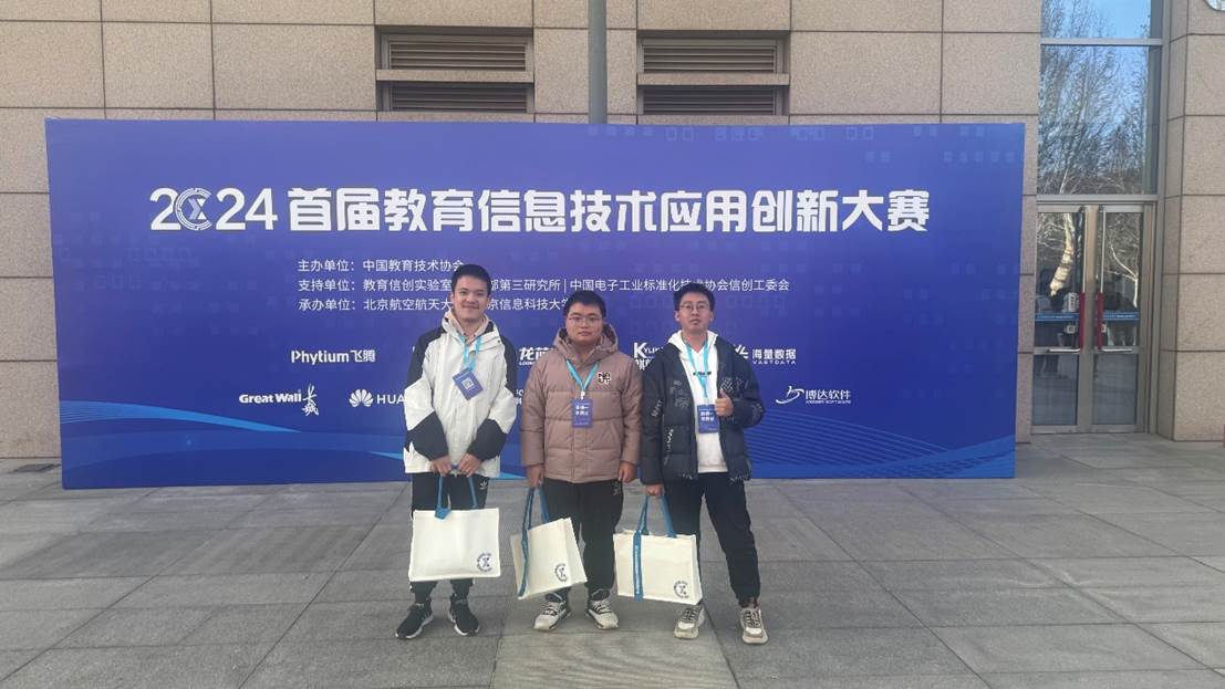 2024年12月15日,首届教育信息技术应用创新大赛在北京航空航天大学公司成功举办,来自伟德国际VICTOR1946的王品呈、舒锦成、张宸三位同学在此次大赛中表现优异,荣获“软件适配迁移赛项(赛项一)”一等奖。