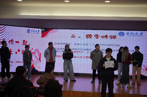 首先,同学们进行了一系列充满趣味与挑战的热身游戏。在“逢七必过”、“数字炸弹”、“随机起立”游戏中,同学们不仅体验着心跳加速的刺激与乐趣,更在轻松愉快的氛围中拉近了彼此的距离。紧接着的抽奖环节更是为活动增添了惊喜与欢乐,五位幸运儿获得了精美玩偶,他们的喜悦之情溢于言表,也为现场观众带来了满满的祝福。
