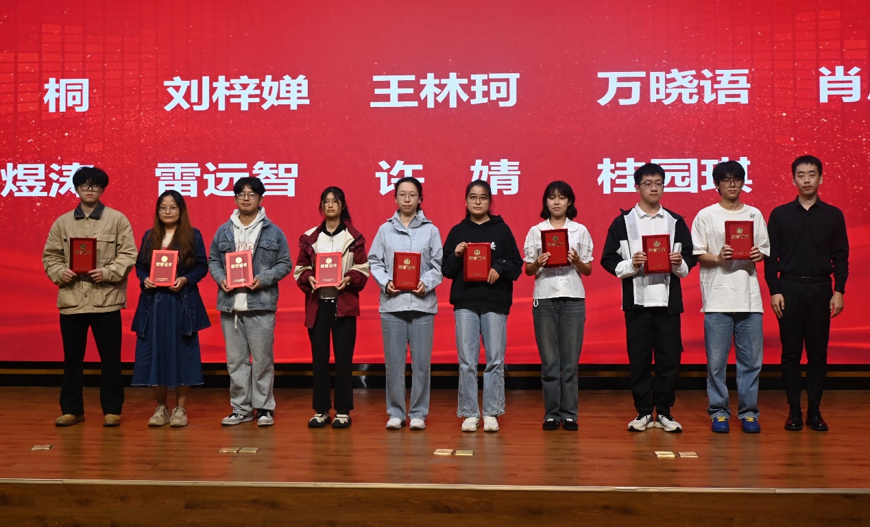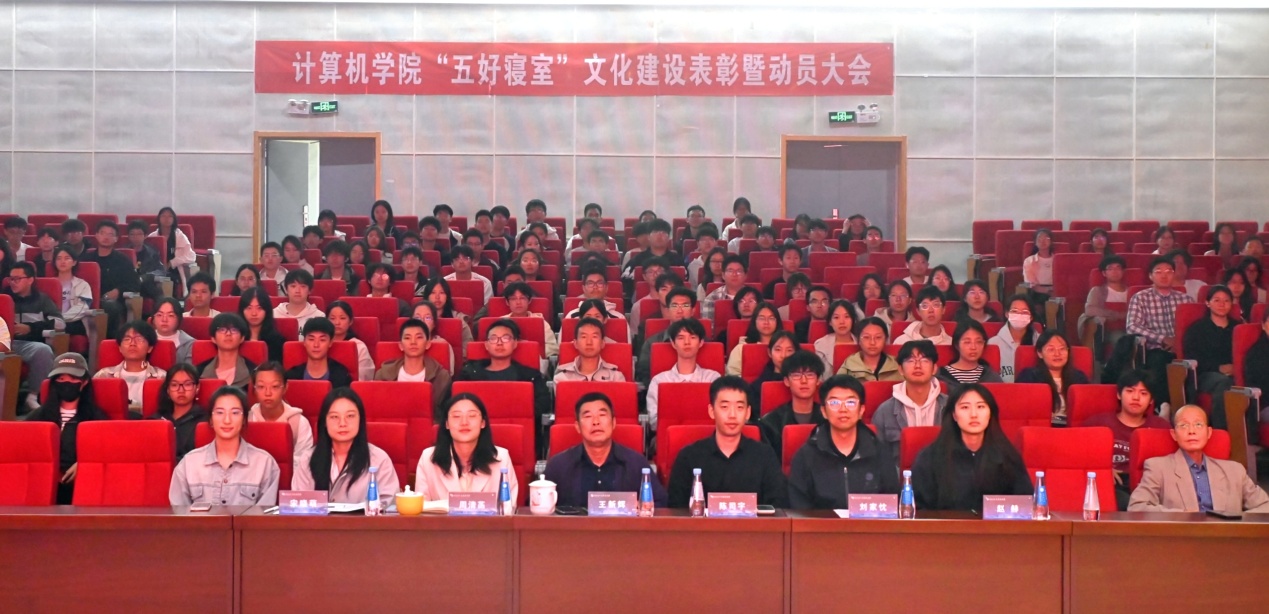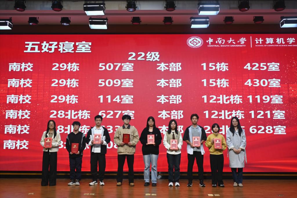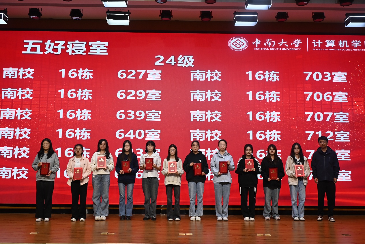 在表彰环节,大会对前期评选出的“五好寝室”及优秀个人进行隆重表彰,参会领导老师分别为获奖寝室代表颁发荣誉证书及奖品,并合影留念。