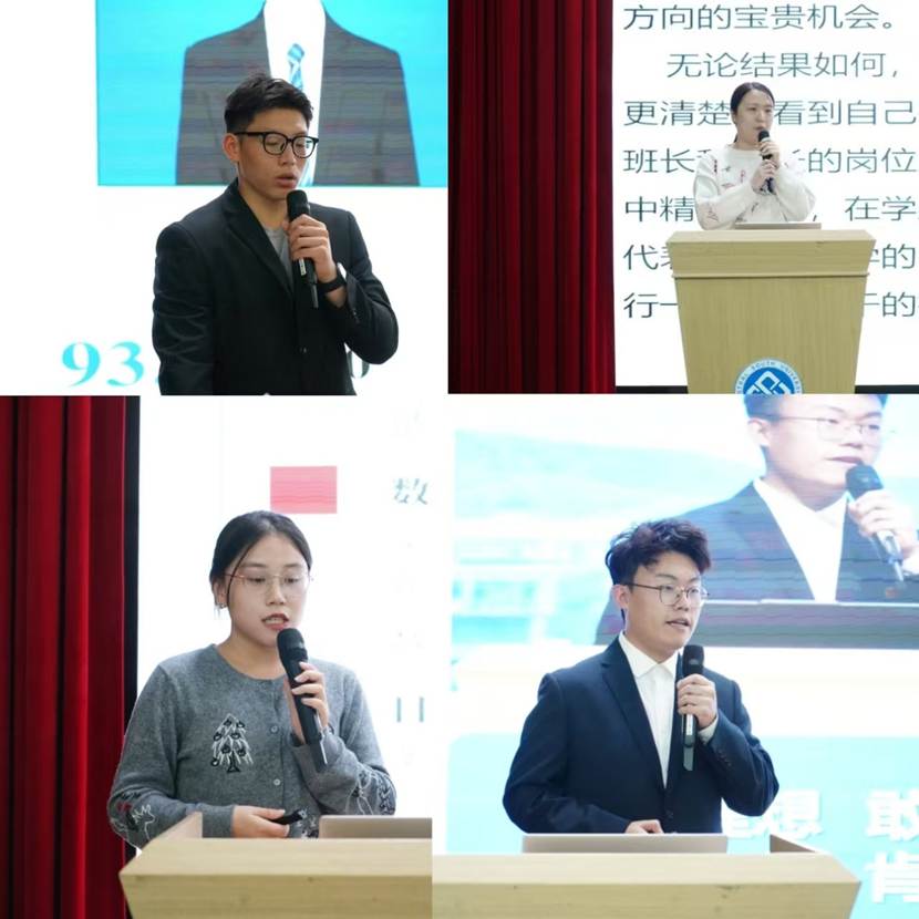 接下来进行的是优秀员工干部答辩。员工干部王敬博、刘昊等同学在答辩中展现了自己员工工作方面取得的进步与卓越成果,同时也展示了个人情况与优秀成绩,体现了公司员工干部对服务同学、全面发展品质的价值追求。