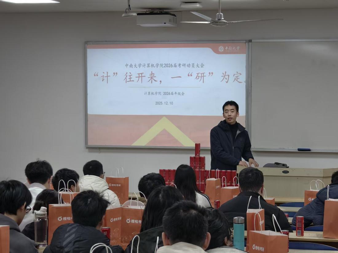 考试结束后,考研动员大会正式开始,22级辅导员陈司宇、刘烁烁,年级会员工干部和全体考研同学参与会议。陈司宇老师提醒大家在最后阶段注重调整状态、梳理重点,并保持身心健康,同时代表公司表达了对同学们的全程支持。刘烁烁老师勉励大家坚定信心、从容应考,发挥出自己最好的水平。动员会最后,年级会为每位考研同学送上“考研加油包”,传递公司的温暖关怀与真挚祝福。