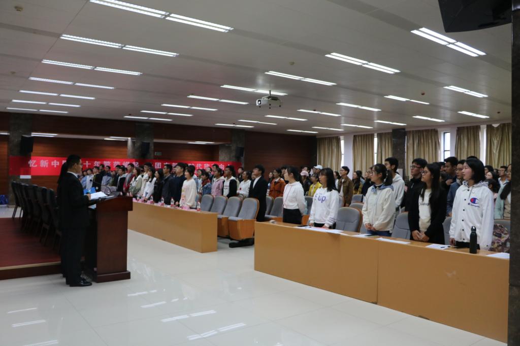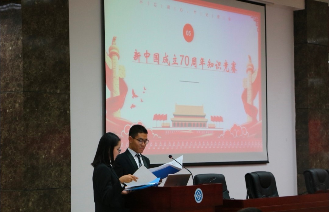 随后团支书们对事先自行分组后所作的模拟团日活动进行了分享与答辩,并由各个常委与老师担任评委进行了答辩以及评分,精彩的分享与对答又为本次大会增添了新的色彩。之后又进行了建国七十周年相关知识的问答环节,各个团支书对大屏幕上投出的相关问题进行抢答,现场气氛活跃,团支书们都积极回答问题,在这个过程中也深化了大家的爱国主义情怀,抢答成功的团支书获得了精美礼品。